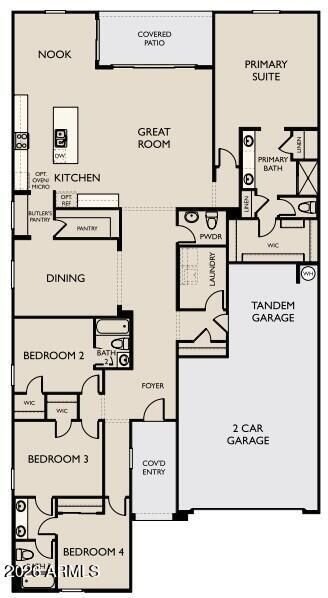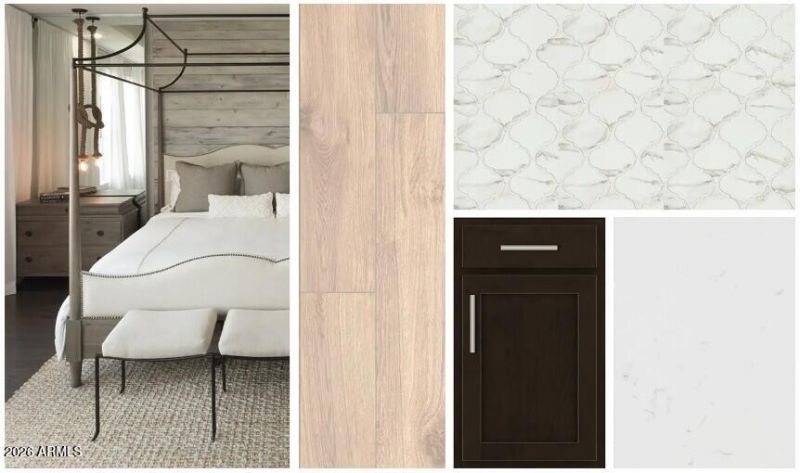 Welcome to Stonebridge Manor in Waddell, where thoughtful design meets everyday comfort. The stunning Jade floorplan offers 2,629 sq. ft. of single-story living with 4 bedrooms, a formal dining room, 3.5 bathrooms, and a spacious 3-car tandem garage. Inspired by our Roosevelt Collection, this home invites you to leave the world of constant change at your front door and embrace a style that never gets old--classic with a modern flair. Rich cabinetry, elegant Carrara Breeze quartz countertops, and a designer tile backsplash create a sophisticated Gourmet kitchen complete with GE stainless steel built-in oven and microwave and electric cooktop. Durable wood-look plank tile flooring flows through the main living areas, while plush carpeting enhances comfort in the bedrooms. 8 interior doors, 2 faux wood blinds, and a 4-panel sliding glass door open to a covered patio for seamless indoor-outdoor living. With pavers at the driveway and entry and a soft water loop, this luxurious retreat is designed to inspire memories for years to come.