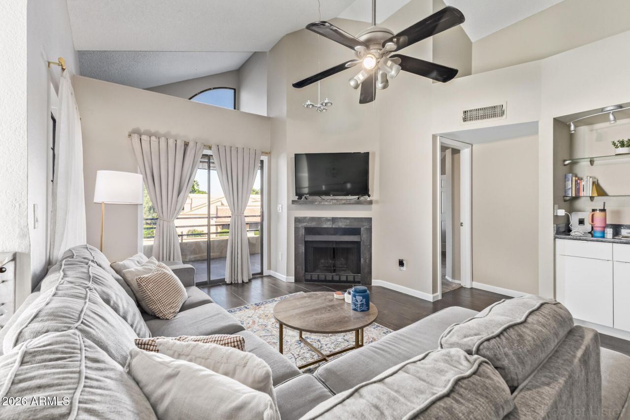 Experience elevated living in this beautifully maintained second-floor condo in the desirable Paradise Valley area. This spacioussingle-level floor plan offers 2 bedrooms and 2 bathrooms with vaulted ceilings that create a bright and open feel. The updated kitchenfeatures granite countertops, painted cabinetry, and stainless-steel appliances. The inviting living room includes a fireplace and access toa private balcony. The spacious primary suite offers a walk-in closet, balcony access, and an ensuite bathroom with dual sinks and a walk-inshower. Move-in ready and ideally located just steps from the community pool--perfect for relaxing and enjoying Arizona living.
