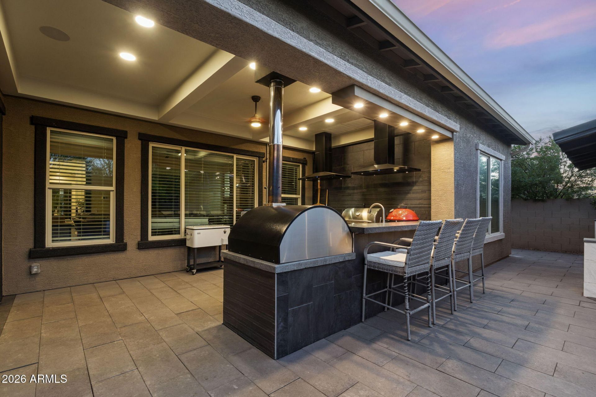 Perfectly positioned in the heart of Gilbert, this expansive 4,078+ sq ft residence is designed for everyday living & unforgettable entertaining. Ideally located minutes from freeway access & premier shopping, the home offers 5 spacious bedrooms; each with walk-in closets, including a full downstairs ensuite. A private office with custom glass doors and an upstairs loft add flexibility. The chefs kitchen features Monogram Pro Series appliances, three ovens, a butlers pantry with sink, and oversized quartz countertops. Step outside to a showstopping backyard with custom pergola, fireplace, and a fully equipped outdoor kitchen w/ Egg, pizza oven, commercial griddle, and Blaze Pro grill. Includes a fully air-conditioned 4-car garage with optional extension, ideal for a workshop or gym.