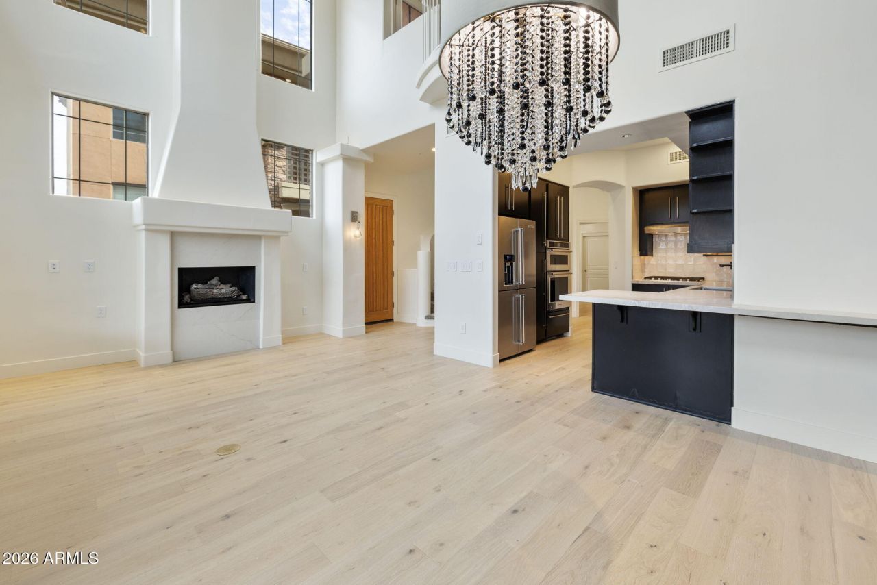 Welcome to the gated community of Astragal, where style meets comfort in this beautifully upgraded 2-bed/2 bath townhouse. Floor-to-ceiling windows flood the open-concept living space with natural light, highlighting a cozy gas fireplace and seamless flow to a private patio. The kitchen has been fully refreshed with elegant quartz countertops, a modern backsplash, and a sleek stainless steel appliance package. Fresh interior paint and brand new real wood flooring throughout the living spaces give the home a crisp, contemporary feel. Upstairs, a spacious loft with balcony access offers the ideal flex space for a home office/gym/media lounge. The primary suite is a true retreat, featuring a coffee bar for quiet mornings and a spa-inspired ensuite with a brand new oversized walk-in shower with dual shower heads, brand new plumbing and electrical shower fixtures. The guest bath also features new fixtures for a cohesive, elevated finish. Additional highlights include an oversized one car garage with built-in storage plus assigned covered parking. Conveniently located near the 101 for easy access Sky Harbor Airport and premier dining & shopping.