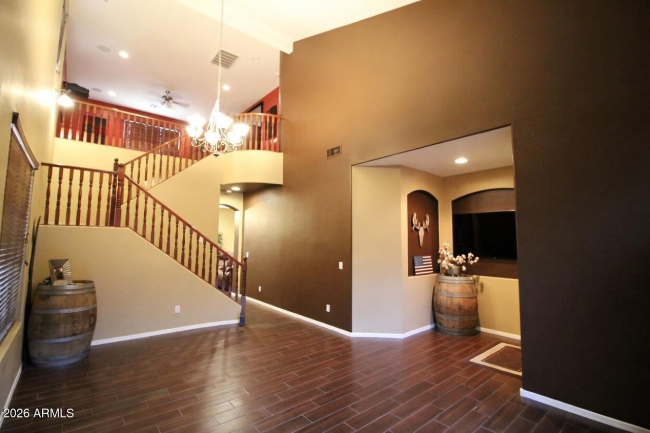 Welcome to this inviting two-story home in the heart of Central Goodyear. Offering approximately 2,079 square feet of comfortable living space. Featuring 3 bedrooms, 2.5 bathrooms, and a spacious layout perfect for those seeking room to grow.Step inside to discover soaring vaulted ceilings that create an open and airy feel throughout the great room and large living area, highlighted by a cozy fireplace--ideal for relaxing evenings. The main level includes a convenient half bathroom with a stylish pedestal sink, while the laundry room offers a sink and extra cabinet storage for everyday practicality.The open kitchen is a standout, boasting rich cabinets, granite countertops, a generous pantry, and a central kitchen island that makes meal prep and entertaining a breeze. Upstairs, youll find a versatile loft area, plus the primary suite with a walk-in closet and a luxurious full master bath featuring dual sinks, a separate shower stall, and soaking tub.Outside, the huge backyard with a covered patio provides endless possibilities for outdoor living, whether youre envisioning a play area, garden or private retreat. The desert front and back landscaping keeps maintenance low, while the 2-car garage offers secure parking.Conveniently located near parks, shopping, schools (including Desert Star Elementary and Desert Edge High School), and major freeways for easy access to Phoenix and beyond. Enjoy Goodyears sunny Southwest lifestyle with mountain views, community amenities, and year-round outdoor opportunities.A fantastic opportunity in a desirable, established neighborhood--move-in ready and full of potential!