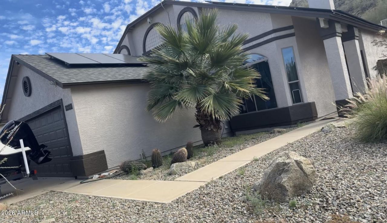 PLEASE READ ALL DETAILS! SOLD AS IS! NO SITE UNSEEN OFFERS!Welcome to a rare opportunity on one of the biggest lots in the area where vision meets value -- a spacious, character-filled retreat with RV gate access offering flexibility, function, and future potential all in one.From the moment you arrive, the curb appeal sets the tone. A striking façade, desert-inspired landscaping, and a mature palm create a warm yet elevated presence. Youll love the long-extended driveway as well as the gated RV parking to provide both convenience and versatility -- perfect for recreational vehicles, boats, trailers, or additional storage. Step inside to soaring vaulted ceilings and an expansive living room designed for entertaining. Natural light pours through all-new windows and sliding glass doors, enhancing the open, airy feel of the home. The layout flows seamlessly, offering three bedrooms and two baths, with an upstairs loft that can easily serve as a fourth bedroom, office, or flex space.This home is mid-transformation an incredible opportunity for a buyer who appreciates upgrades already completed while adding their own finishing touches. The property is being sold AS-IS, please note, the flooring throughout the home along with the stairs flooring was removed and ready for installation.The brand-new flooring was already purchased and included in the sale. Some interior walls are ready for fresh paint to complete your own vision. The kitchen showcases all-new stainless-steel appliances, with renovation work remaining at the main counter bar and sink area and wall-allowing the next owner to customize the final design.Upstairs, the primary bathroom renovation is ready for completion, it has been fully demoed, with brand-new vanity, mirror, sink, tub, and toilet already purchased and included, awaiting installation and flooring finish-out.Major Upgrades Completed Since Ownership:Outside of the home paintedLoft painted & popcorn ceiling removedAll-new windows & sliding glass doors throughoutAC compressor and handler replacedUV air purifier, thermostat & soft start installedAll-new electrical panelsPartial roof replaced prior to solar installationSolar panels installed (rented with lease)Hard water softener addedNew stainless steel kitchen appliancesWiFi-enabled garage door opener220 (60amp) & 120 (20amp) outlets added in garageNew outlets, switches & door handles throughoutUpdated fixtures, lighting & ceiling fans (interior & exterior)Wood posts installed for shade canopyThe backyard offers functional outdoor living space with a covered patio ideal for relaxing or entertaining. The 10x10 shed provides additional storage. If desired, the dog run can remain with the property.Please note: Duck and fishpond do not convey. Personal video cameras do not convey.This home is perfect for a buyer seeking equity potential many of the heavy-lift upgrades are already complete, leaving the finishing details to match your personal style.Opportunities like this with solar, gated RV parking, major system upgrades, bring your vision and make this exceptional property your masterpiece.