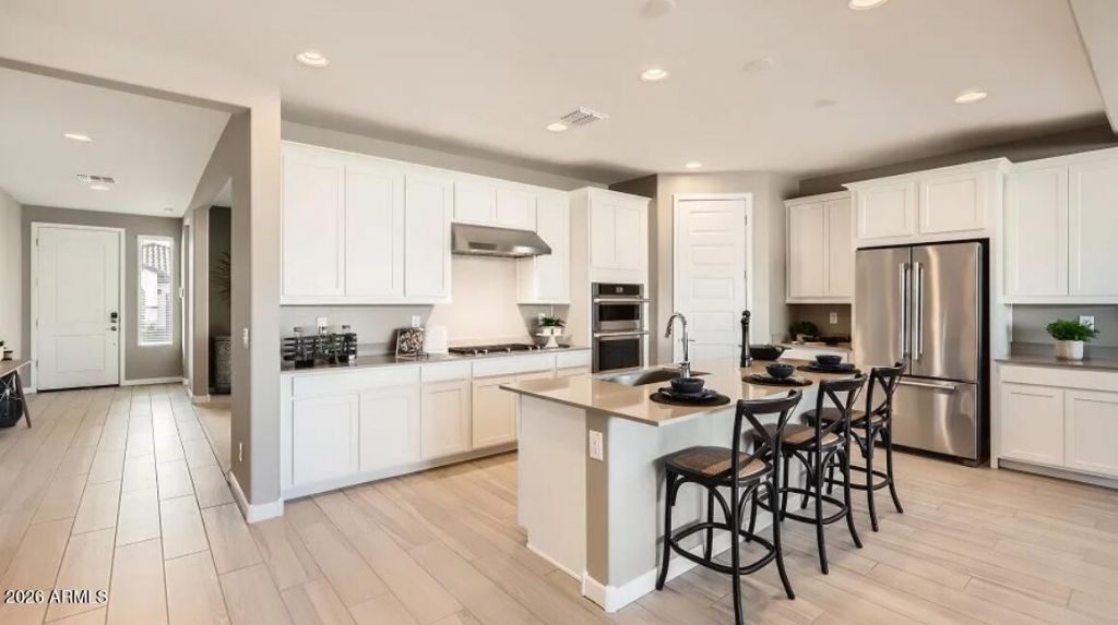 Seller will provide a credit towards a rate buydown and closing costs with preferred lender. Ask us how to save thousands over the life of your loan. Asante Heritage is a gated 55+ active adult community located in beautiful Surprise, AZ! Surrounded by mountain views, this community offers access to local shopping, dining, and recreational activities. Residents enjoy a vibrant lifestyle with resort-style amenities including a pool, pickleball courts, putting course, fitness center, clubhouse, and more. This home comes fully equipped with all brand-new stainless steel kitchen appliances and is complete with 6x36 tile flooring, elegant quartz countertops, and modern maple linen cabinetry. **Photos are of model home**A copy of the public report is available on the ADREs website.
