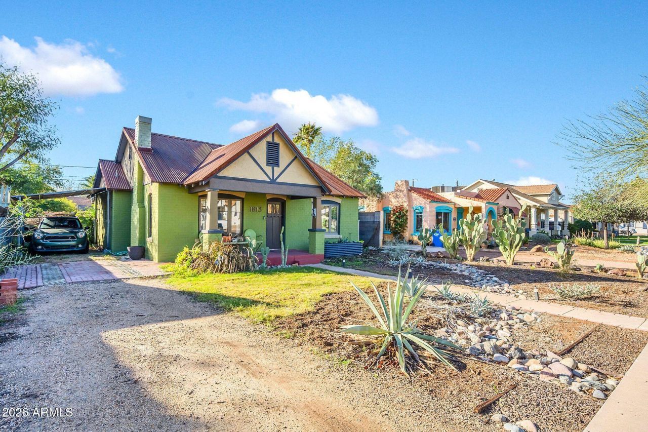 Built in 1931 and thoughtfully renovated with sustainability and historic integrity in mind, this exceptional Brentwood Historic District bungalow is a rare blend of artisan craftsmanship, energy efficiency, and timeless design. The home was restored under the guidance of a nationally celebrated decorative artist???whose work has appeared in Traditional Home, Elle Decor, and The New York Times Home & Lifestyle???and whose prior residence earned the prestigious Coronado Renovation Award. Inside, vintage character shines through original Deco-era light fixtures, decorative metal ceilings, stained-glass accents, and beautifully preserved architectural details. The kitchen is a standout, featuring vintage 1951 metal cabinetry, the original OKeefe & Merritt stove, and classic finishes that honor the homes history while remaining fully functional.The layout includes a remodeled Jack-and-Jill bathroom, a walk-in primary closet, and a finished third bedroom, offering flexibility for guests, office, or creative space. Eco-conscious upgrades include fused bamboo flooring with an oak appearance, double-pane Pella replacement windows, and a corrugated Corten steel roof with an estimated 50-100 year lifespan that is fully recyclable.Major systems have been thoughtfully updated, including newer 3.5-ton A/C, gas heat, a gas on-demand water heater, copper plumbing, and an upgraded electrical panel prepped for future solar installation. The original wood-burning fireplace remains intact and functional, with the option to convert to gas if desired.The property is located within the Brentwood Neighborhood, recognized at both the city and national level as a historic district, where renovation grants are available through Phoenix Historic Preservation. Additionally, the lot is pre-approved for a second single-family structure, creating a rare opportunity for a detached guest house, Airbnb, or long-term rentaladding meaningful upside in one of Central Phoenixs most sought-after historic communities.This is a home where history, artistry, and sustainability come togetheroffering a truly special ownership experience.