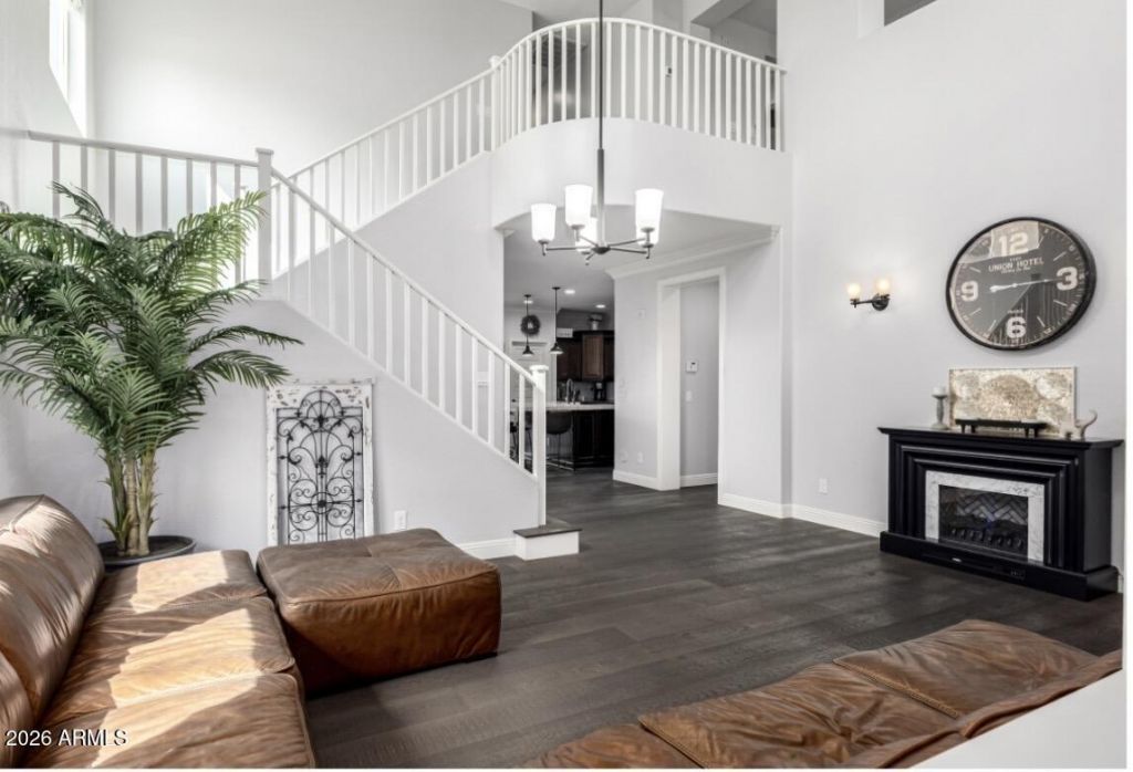 Welcome to this stunning 5 bedroom + den, 3.5-bath home in Adora Trails, offering style, space, & a lifestyle youll love. Abundant natural light fills the home & the expansive triple-pane sliding doors seamlessly connect the indoors to a backyard retreat designed for relaxing or entertaining, complete with low-maintenance landscaping, a paver patio, & lush turf. Inside, soaring ceilings and elegant upgrades greet you at every turn. The heart of the home is the show-stopping kitchen, featuring custom cabinetry, an oversized island w/ farmhouse sink, designer backsplash, under-cabinet lighting, & direct access to the backyard oasis. Thoughtful touches such as crown molding, real wood plank floors, upgraded baseboards, window sills, & custom trim elevate every space. Your downstairs primary suite is a true retreat w/ its own sitting area, while upstairs youll find 4 additional bedrooms, a spacious loft w/ mountain views, & a convenient Jack & Jill bath. The multi-use den features stylish wainscoting & the downstairs guest bath includes a modern shiplap accent wall. Abundant storage options include under-stair storage & an oversized walk-in pantry, making organization effortless.Adora Trails is not just a neighborhood; its a vibrant community w/ a plethora of amenities. Residents enjoy walking trails, a clubhouse w/ a full gym & studio room where live classes are taught. A kitchen & meeting rooms are also available for use. There are many parks throughout & an on site elementary school. The pool features lap lanes, a wading area w/ splash pad & is heated during the winter months allowing year round swimming. The community hosts numerous events, fostering a strong sense of camaraderie among neighbors. Come see why so many are calling Adora Trails home.