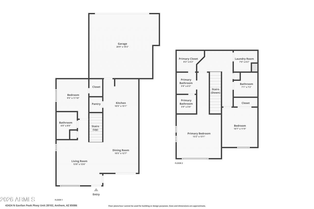 Tucked inside the gated Serenity Villas at Anthem, this beautifully updated 3-bedroom, 3-bath townhome with a 2-car garage offers the perfect blend of comfort, flexibility, and elevated Arizona living. Positioned on a premium corner lot, the home welcomes you with warm natural light, soft neutral finishes, and an open-concept design that feels both inviting and effortlessly functional. The thoughtfully designed layout includes a full bedroom and bathroom on the main level, ideal for guests, a private office, or multigenerational living, while upstairs youll find two spacious retreats, including a serene primary suite complete with dual sinks and a walk-in closet.At the heart of the home, the kitchen is designed to gather--featuring granite countertops, stainless steel appliances, a center island, and generous cabinetry, all seamlessly connected to the dining and living spaces, making everyday living and entertaining feel effortless. Just beyond, your private covered patio becomes an extension of your living space--perfect for slow mornings with coffee or winding down under Arizonas golden sunsets.Thoughtful upgrades provide both comfort and peace of mind, including a new water heater installed in 2026, recently serviced HVAC (2026), and upgraded sunshades on the windows to enhance energy efficiency and year-round comfort--especially valuable in the Arizona climate.Life here extends well beyond your front door. Residents enjoy access to a resort-style pool, fitness center, and beautifully maintained grounds, all just steps away, creating a true lock-and-leave lifestyle ideal for full-time residents, seasonal owners, or those seeking low-maintenance living without compromise. The HOA further enhances convenience by covering water, sewer, and trash services, simplifying both your monthly expenses and your daily routine.What this means for your lifestyle:Instead of juggling multiple utility bills, exterior maintenance, and weekend upkeep, your time here is spent enjoying the community, relaxing at the pool, or heading out without a second thought. This is true low-maintenance living--perfect for busy professionals, seasonal residents, or anyone who values simplicity, predictability, and ease.And the location? This is where opportunity meets convenience. Situated in the thriving North Phoenix corridor, youre just minutes from shopping, dining, and major freeway access--while also benefiting from proximity to the rapidly expanding TSMC semiconductor development, one of the largest and most impactful economic projects in the country, driving long-term growth, job creation, and increasing demand in the area.Whether youre searching for a place to call home, a seasonal retreat, or a smart investment in a high-growth location, this residence delivers on every level--style, functionality, and future potential--all wrapped into one exceptional opportunity in Anthem.