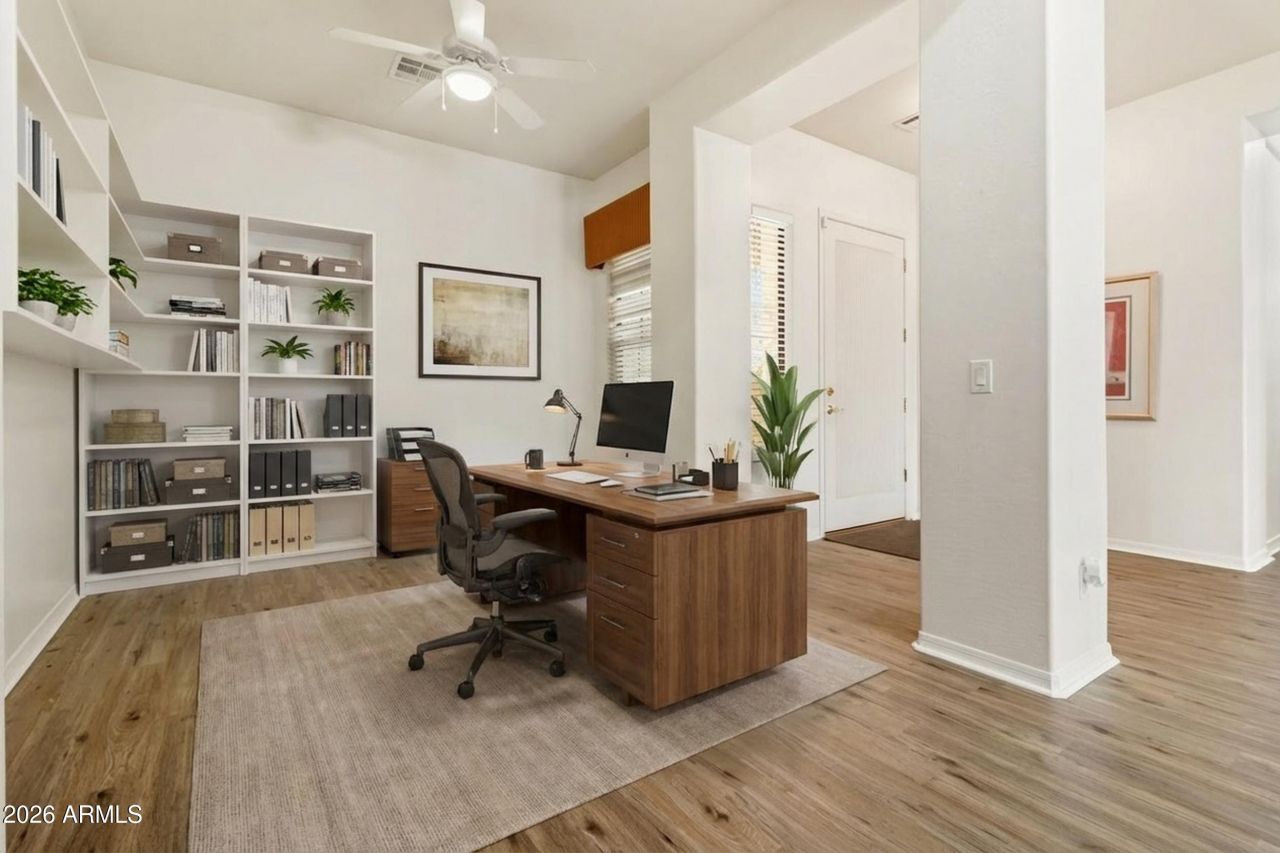 Over $150,000 in upgrades in the last 3 years! Gated community home with new flooring, 2025 blinds, security door, RV gate, and a resort-style backyard featuring a new pool & spa, travertine, and custom BBQ. Select bedrooms have dedicated A/C units. Includes a 4-car garage and secure RV parking. Prime location near Cardinals Stadium and Westgate. Dont miss it!