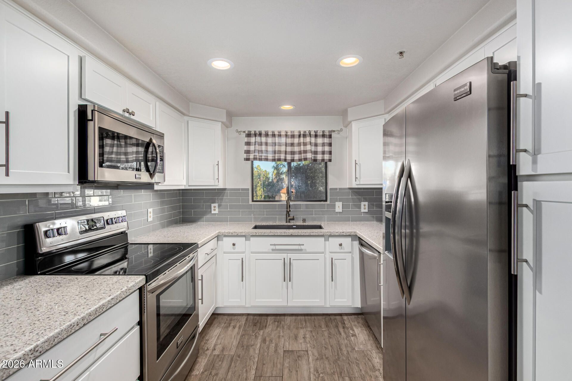 Completely updated condo in the beautiful, gated community of Las Brisas - perfectly located in N Phoenix. This 2 bed, 2 bath home has been thoughtfully remodeled, with new white shaker cabinets in kitchen and baths, all new quartz counter tops throughout, stainless appliances, new fixtures and more. Intelligent design makes great use of the space - a split floor plan, both bedrooms have walk-in closets, and there is an in-unit washer & dryer, and exterior storage closet. Living room gives way through sliding glass doors to your own private balcony, overlooking sparkling pool and cabana. Community offers resort-style amenities, with 3 swimming pools (heated), a fitness center & tennis/pickleball courts. Check out this location - 20 min to the airport and downtown, with direct canal access - perfect for walking, biking or hiking. Also, just 2 minutes to the Phoenix Mountain Preserve and Dreamy Draw Recreation Area. A beautiful home in a perfect setting!