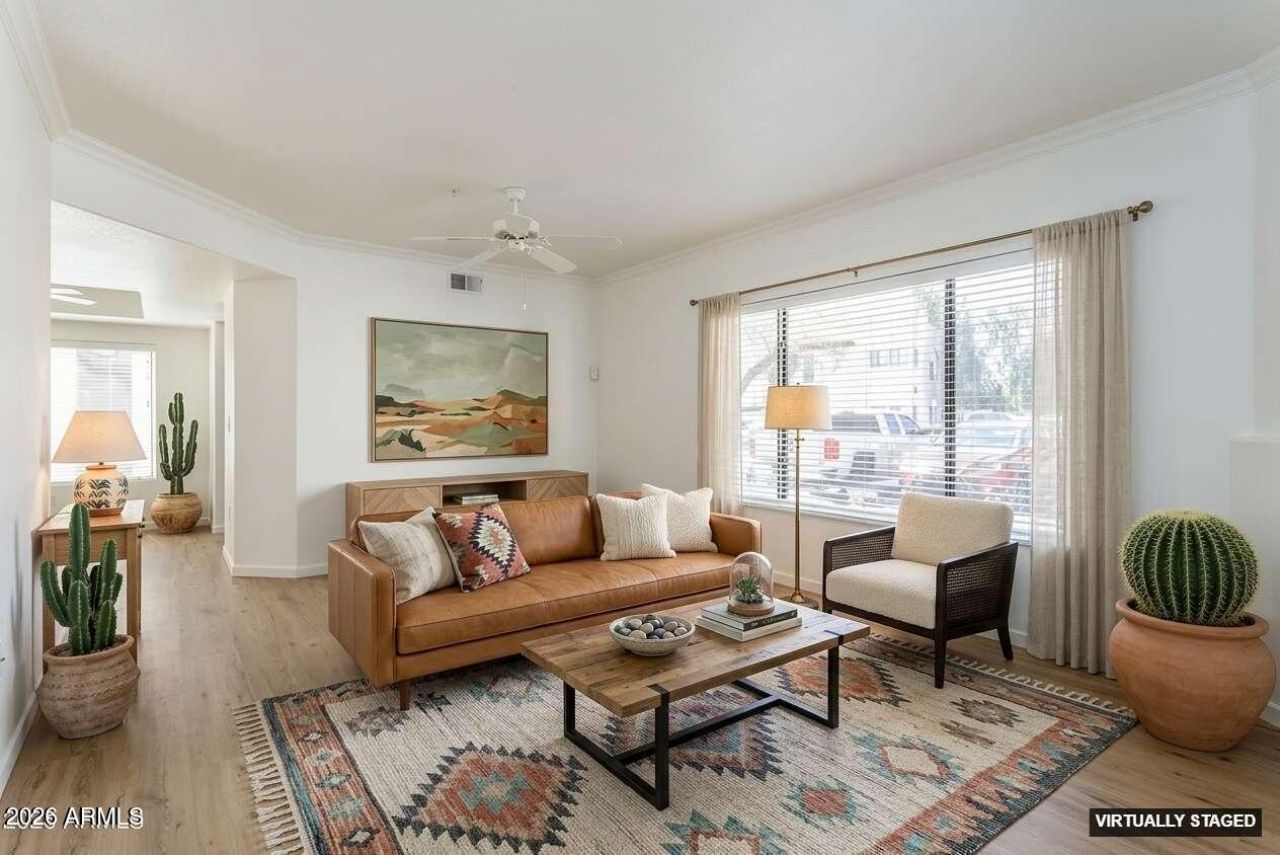 Freshly painted throughout and featuring brand new luxury vinyl plank flooring, this ground floor end unit offers an open layout perfect for relaxing or entertaining. The gated complex is conveniently located in between the 7s where youll enjoy being minutes from major freeways, shopping, dining, and all that vibrant Central Phoenix has to offer. The unit itself provides easy access to the scenic Arizona Canal Trail for outdoor recreation. Its the perfect blend of comfort and convenience.