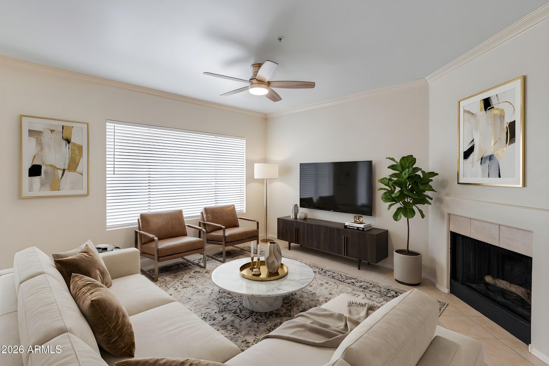 Beautiful ground-level end unit ideally located just steps from the pool in the quiet gated community of Las Brisas. This 2 bed, 2 bath condo offers a functional split floorplan, abundant natural light, and no interior steps--perfect for easy, everyday living.The kitchen features granite countertops, maple cabinetry, recently updated stainless steel appliances, and a breakfast bar that opens to the main living space. Cozy up by the wood-burning fireplace or step outside to your private covered patio overlooking the lush community grounds and pool area.Recent updates include a remodeled primary bathroom (2023) with a walk-in, accessibility-friendly shower and safety grab bars, along with a new hot water, stainless steel kitchen appliances and new ceiling fans all update in 2023. Both bedrooms offer walk-in closets, and the home includes in-unit laundry, assigned covered parking, and additional slab parking.Las Brisas residents enjoy multiple heated pools, spa, tennis & pickleball courts, fitness center, clubhouse, and beautifully maintained grounds--all with convenient access to the 51 & I-17, shopping, dining, and light rail.